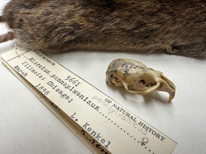 Skull and skin from a vole, collected in 1898 in Chicago.