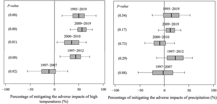 "Adaptive behaviors have alleviated 52.5 %– 63.5 % of the adverse impacts of high temperatures, with rice and maize more adaptable than wheat,” explains Liu. “However, adaptive behavior has not effectively mitigated excessive precipitation impacts."