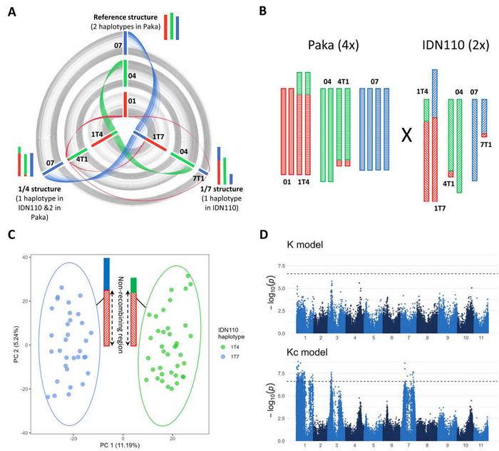 Published (DOI: 10.1093/hr/uhae307) on November 6, 2024 in Horticulture Research, a collaborative study led by Centre de coopération internationale en recherche agronomique pour le développement (CIRAD) explored the genetics of 2,723 triploid banana hybrids derived from diploid and tetraploid crosses. Researchers genotyped over 200,000 SNPs and analyzed their associations with 24 agronomic traits using both conventional and chromosome-specific GWAS models. The study aimed to overcome the limitations posed by chromosomal translocations, which mask recombination and reduce detection power. Their new model significantly improved quantitative trait locus (QTL) discovery, offering refined insights into the genetic architecture of important yield and structural traits in bananas.