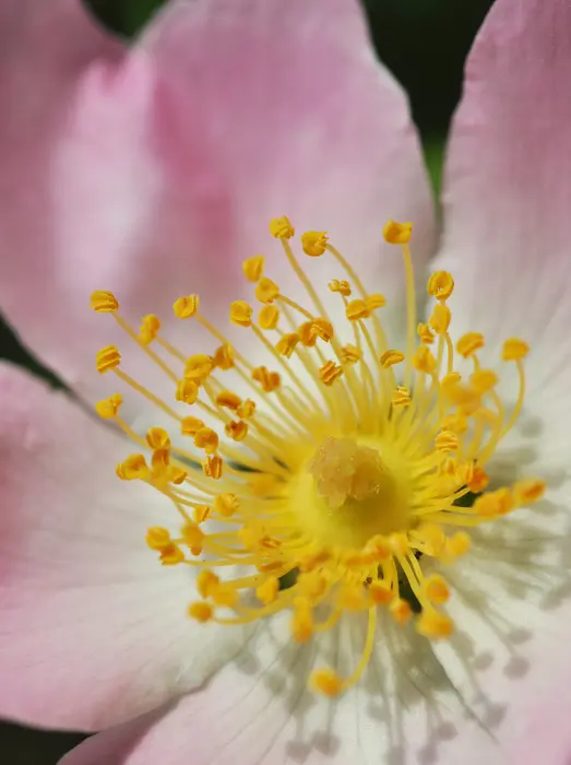 Pentaploid Rosa canina’s flower reveals its unique sexual reproduction: asymmetric meiosis creates haploid pollen (anthers) transmitting only bivalent-forming chromosomes, while ovaries inherit both bivalents and univalents creating tetraploid eggs. This mixed inheritance maintains pentaploidy—a rare strategy among eukaryotes.