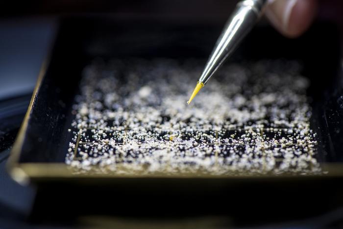 Washed foraminifera being picked for computer tomography and geochemical analysis