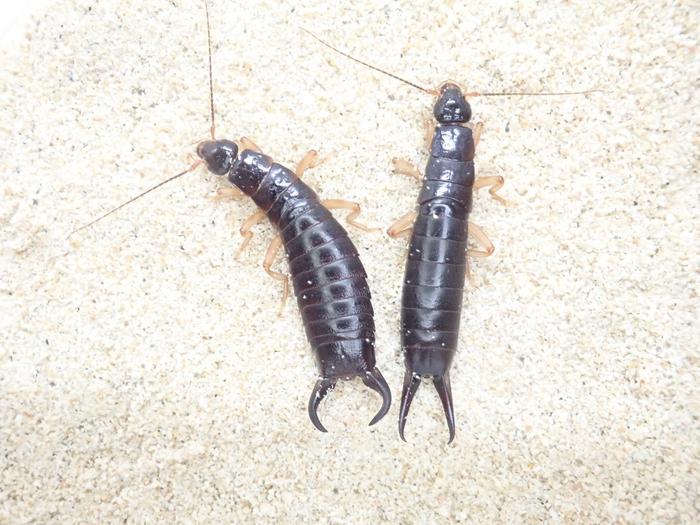 Male (left) and female (right) maritime earwigs (Anisolabis maritima).