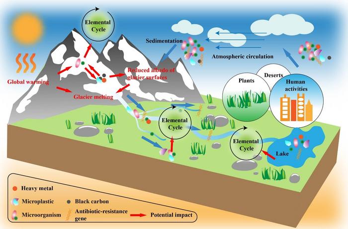 However, increased environmental pollution may affect the glacier microorganisms. Some pollutants synergize with climate warming to accelerate glacial melting, with meltwater carrying microorganisms, nutrients, and pollutants into downstream ecosystems, which may have far-reaching impacts on downstream ecosystems and the global climate.