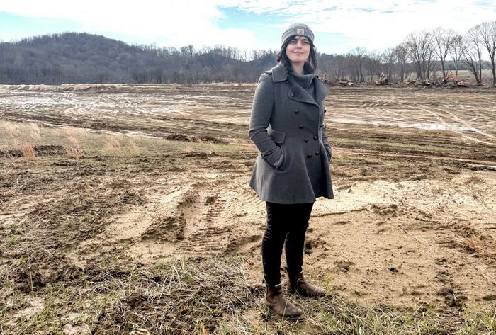 UT ecological systems engineer Eminé Fidan evaluates the extent of damage to croplands along the Nolichucky River where Hurricane Helene deposited feet of sand and silt.