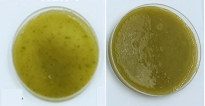 Smoothies pasteurized with pressure (left image) or heat (right image) have higher amounts of digestible polyphenols than raw smoothies.