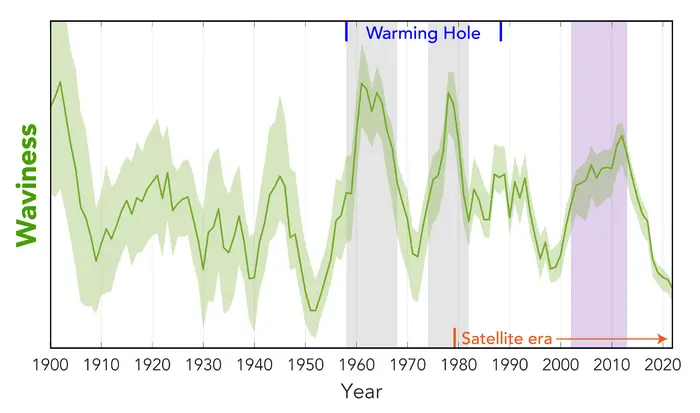The new AGU Advances study confirms that pronounced waves in the jet stream contributed to two-thirds of warming hole cooling from 1958 to 1988. During that time, the researchers report, periodic changes in the jet stream's waviness led directly to fluctuations of the average winter temperature in the Southeast.