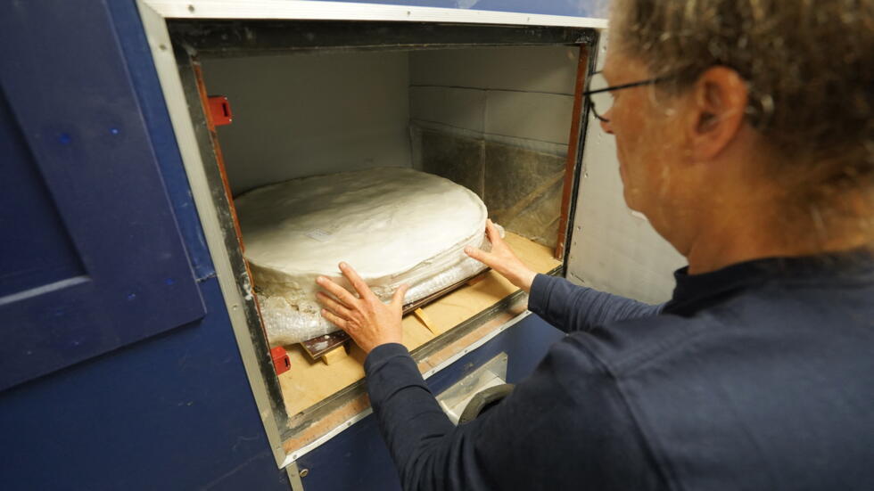 Conservator Helle Strehle places a preserved Viking Age casket discovered at Lisbjerg into an x-ray machine at Moesgaard Museum's labs in Aarhus, Denmark, on June 13. © James Brooks, AFP