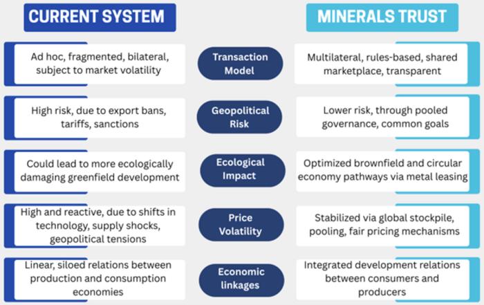 Comparison of the current global critical minerals system and the proposed Global Minerals Trust