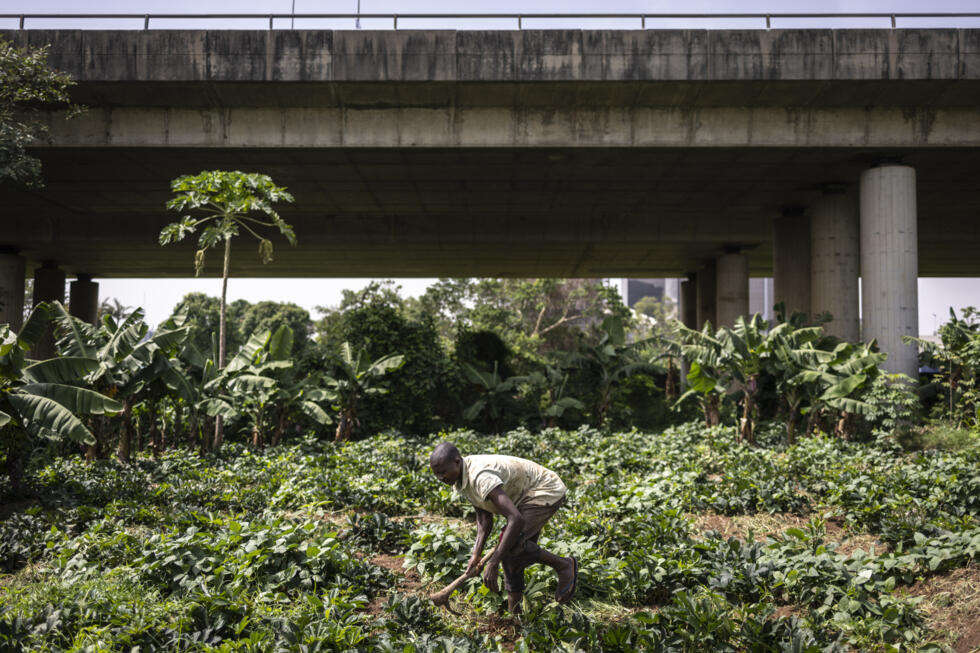 Abuja (AFP) – Under the din of traffic from the highway bridge that cuts over his fields, Bala Haruna inspects corn, cassava and okra on his family farm.
