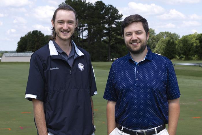 Turfgrass science graduate student Samuel Kreinberg, left, saw his first paper as lead author published in Crop Science journal. He was supervised by his adviser Wendell Hutchens, right, an assistant professor of turfgrass science.