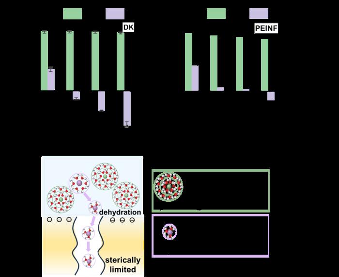 To explain this phenomenon, the researchers proposed a "counter-ion competition mechanism." Under this mechanism, strongly hydrated Mg²⁺ ions accumulate near the membrane surface due to charge attraction, promoting dehydration of the weakly hydrated Li⁺ ions at the pore entrance. This dehydration reduces the size of Li⁺ and strengthens its electrostatic interaction with the membrane, ultimately enhancing its transport across the membrane.