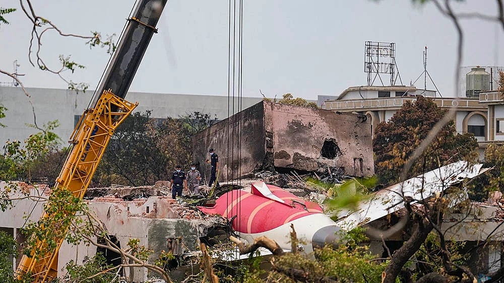 Visual from the Air India plane crash site in Ahmedabad Photo: PTI