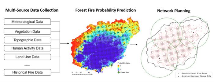 Satellite imagery and advanced meteorological data feed into probability models that can forecast fire outbreaks. “These predictions then inform the optimal placement of aviation emergency stations and helicopter deployments through a specially developed two-stage stochastic algorithm,” says Zhao.
