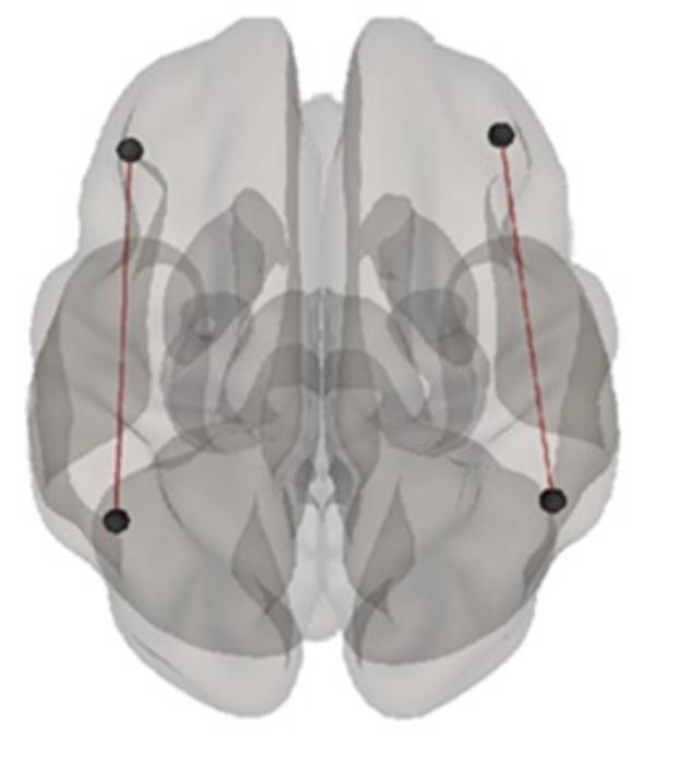3D volume, generated manually by the authors in CONN, depicting the four frontoparietal seeds (left dlPFC, right dlPFC, left PPC, right PPC) as well as the right and left frontoparietal connectivity that was used in the functional connectivity analyses.