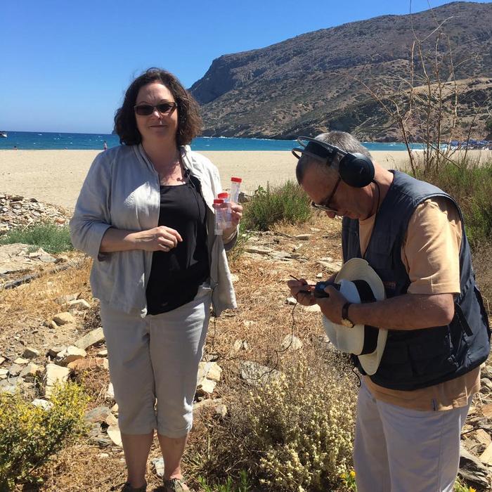 Lynn Schriml, PhD, a scientist with the Institute for Genome Sciences in Baltimore samples soil on Crete during the first-ever island-wide, same-day soil collection.