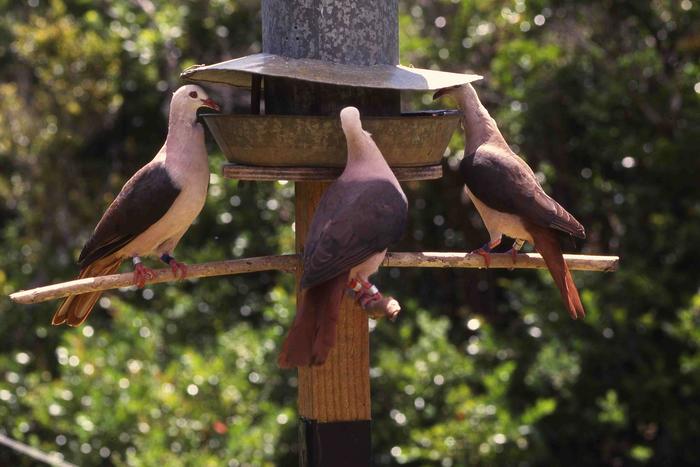 One example of this is the pink pigeon, whose population has been brought back from the brink of extinction - from about 10 individuals to a population now of more than 600 birds - by decades of captive-breeding and reintroduction efforts in Mauritius.