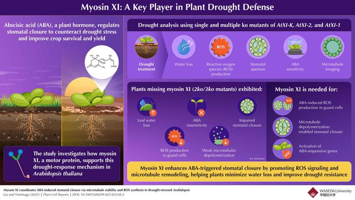While the role of ABA in drought response is well-established, researchers have now identified a surprising contributor to this process: myosin XI, a motor protein traditionally known for transporting cellular components. To explore this, a team of researchers led by Professor Motoki Tominaga from Waseda University, Japan, conducted a study to determine whether myosin XI actively contributes to drought response in plants and to uncover the processes involved. “Although previous studies have suggested a potential involvement of myosin XI in drought stress responses, the underlying mechanisms have remained unclear,” shares Tominaga. The findings of this research were published in Volume 44 of Plant Cell Reports on June 19, 2025. The study was co-authored by Graduate Student Haiyang Liu, also from Waseda University.