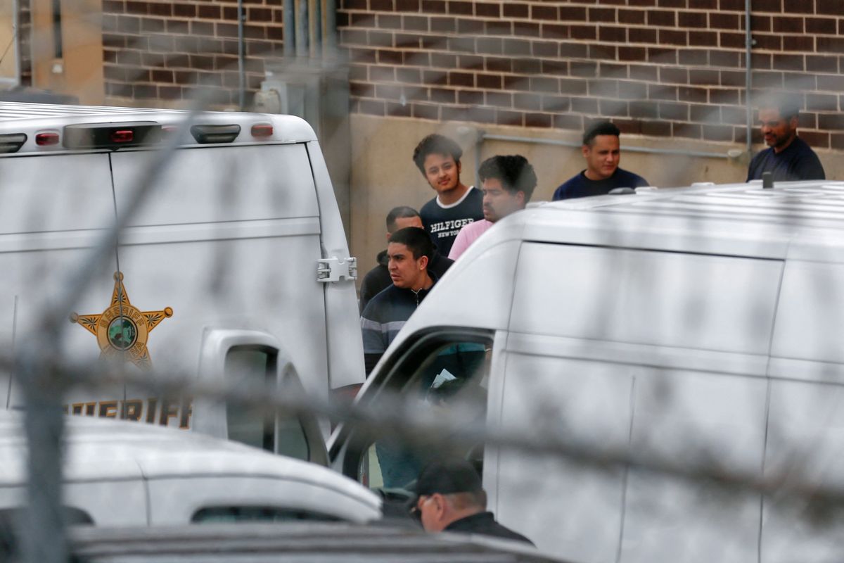 People are loaded into vans at the ICE detention facility in Broadview, Illinois, U.S., June 20, 2025. REUTERS/Octavio Jones