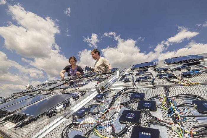 Scientists at HZB run a long-term experiment on the roof of a building at the Adlershof campus. They expose a wide variety of solar cells to the weather conditions, recording their performance over a period of years. These include perovskite solar cells, a new photovoltaic material offering high efficiency and low manufacturing costs. Dr Carolin Ulbrich and Dr Mark Khenkin evaluated four years of data and presented their findings in Advanced Energy Materials. This is the longest series of measurements on perovskite cells in outdoor use to date. The scientists found that standard perovskite solar cells perform very well during the summer months, even over several years, but decline in efficiency during the darker months.