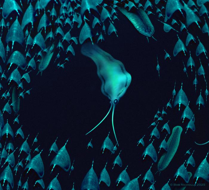 Reconstruction of Nektognathus, swimming in the Cambrian Sea. Image Credit, Bob Nicholls