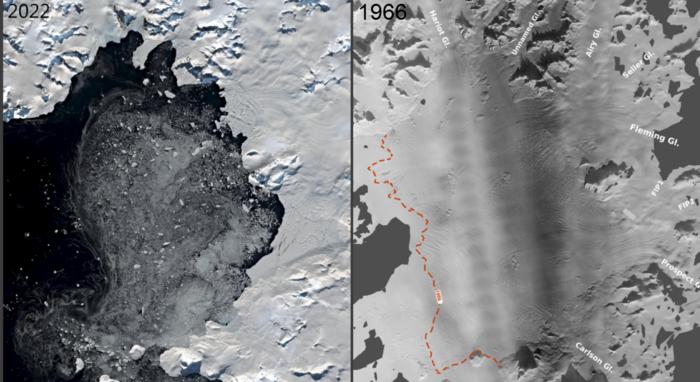 In their paper, now published in Nature Communications, they present a unique dataset based on the vast archives of old aerial images combined with modern satellite observations, which, for the first time, shows the collapse of an ice shelf as a constant evolution in a long time series. A critical insight that can be used to improve scientists' understanding of ice shelves and the mechanisms behind their collapse.