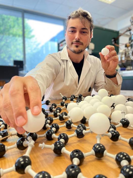 Dr Emerson Kohlrausch demonstrating how atoms are guided and bonded to precise locations on a carbon surface