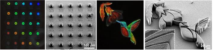Microscopic pixels can be fabricated using direct laser writing, demonstrating the ability to achieve wide gamut structural colours, and these can be combined into microscopic works of art (e.g. as in the hummingbird art example shown here).