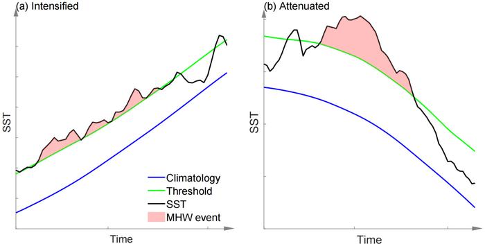 Schematic diagrams of “intensified” and “attenuated” MHWs.