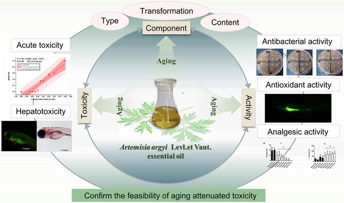 Artemisia argyi H. Lév. & Vaniot essential oil reduces its acute toxicity while enhancing its antioxidant and analgesic activities after storage. This demonstrates the feasibility of reducing toxicity while enhancing bioactivity through storage and offers valuable insights for the detoxification of other essential oil products.