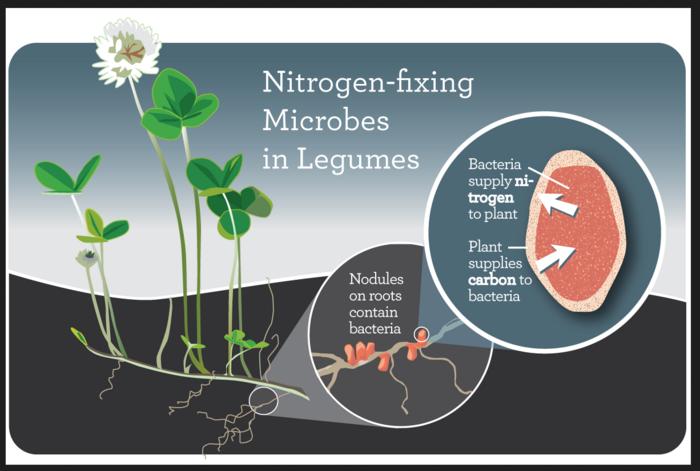 Rhizobial bacteria “fix” nitrogen from the atmosphere by converting it into a form the plants can use, Heath said. In exchange, the legumes give the rhizobia carbon-rich sugars, “which is what plants make when they do photosynthesis.”