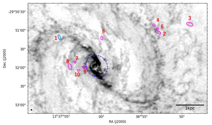 Multiple images like this, made by radioastronomy, allowed researchers to measure the velocities of small clouds of gas against the more general movement of the galactic disk itself. Ellipses 1-10 show the locations and sizes of HVC candidates. ©2025 Nagata et al. CC-BY-ND