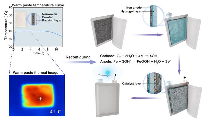 The research team, led by Professor Ping He, created a hydrogel-based iron-air battery system that can be rapidly assembled using readily available warm paste materials. These heating pads, commonly used to provide warmth in cold conditions, contain iron powder that undergoes an oxidation reaction to generate heat.