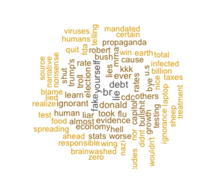 Word cloud of 100 words from the samples used in the article with highest Log Odds Ratio.