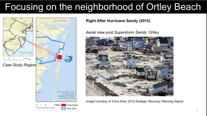 To examine the process of rebuilding in a coastal community, Rutgers University researchers focused on Ortley Beach, a barrier island neighborhood in Toms River, New Jersey. Ortley Beach was devastated by Superstorm Sandy in 2012, with around 200 homes destroyed. Ten years after the storm (in the summer of 2022), the scientists conducted detailed key-informant interviews with Ortley Beach residents and local, state, and federal officials with the help of the Ortley Beach Voters and Taxpayers Association (OBVTA). The central question asked was whether public resources should support staying or leaving the island in the wake of severe repetitive flood losses. A questionnaire investigated their values, beliefs and worldviews -- to explore how those relate to their preferences for federal spending. Analysis of the results revealed important findings that could apply to “many communities on the frontlines of rising sea level and storm surge - like those in Florida, Texas, and Louisiana,” says lead author Laura Geronimo, a 2024 doctoral graduate of Rutgers Bloustein School of Planning and Public Policy Ph.D. and current Knauss Fellow with NOAA.