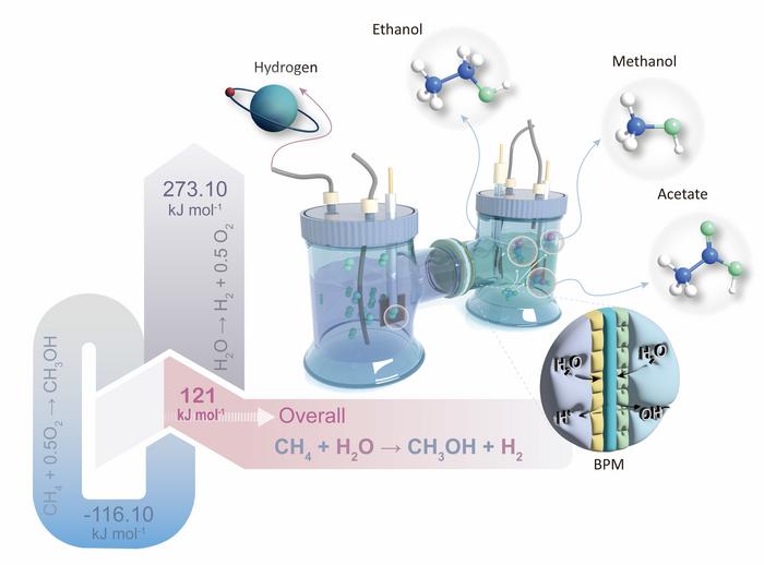 Figure 1 | Schematic diagram of the pH-asymmetric electrolyzer coupling EOM with HER.