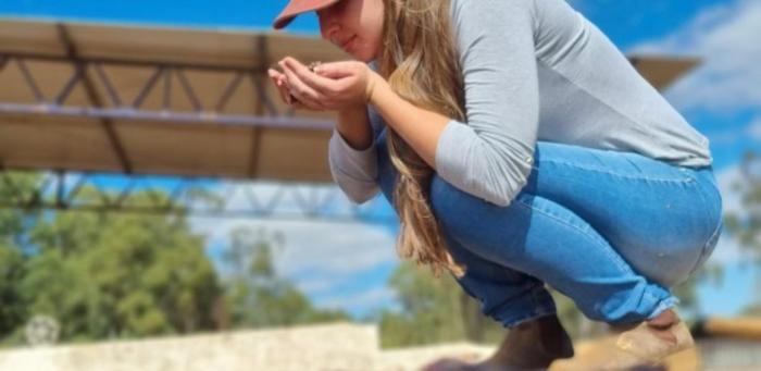 Luiza Braga appreciates the aroma of Arara coffee beans during drying after anaerobic fermentation. The method improved the quality of immature beans