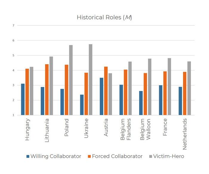 The researchers conducted an online survey with 5,474 participants from eight European countries: Austria, Belgium, France, Hungary, Lithuania, the Netherlands, Poland, and Ukraine. Designed to be representative in terms of age and gender, the sample offered insights into how people today represent the role of their own population under Nazi occupation. Participants were asked to rate their level of agreement – on a scale from 1 to 7 – with statements such as "Most of the people in my country actively fought against the Nazis" and "The population mistreated the Jews because they faced death if they refused."
