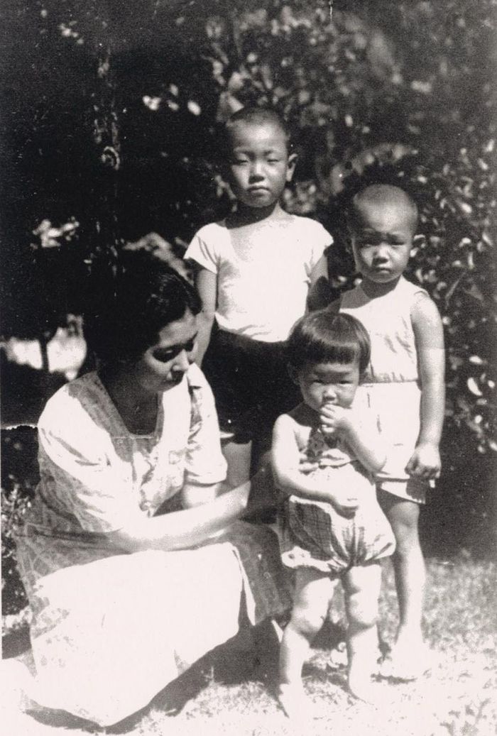 All four members of the Miyazaki family in this photo were killed in the Nagasaki bombing: eight-year-old Yuji (centre rear), five-year-old Tsuneji (right), three-year-old Yasuko (centre front) and their mother, Tsuneko. (Photo courtesy of Saito Takeo)