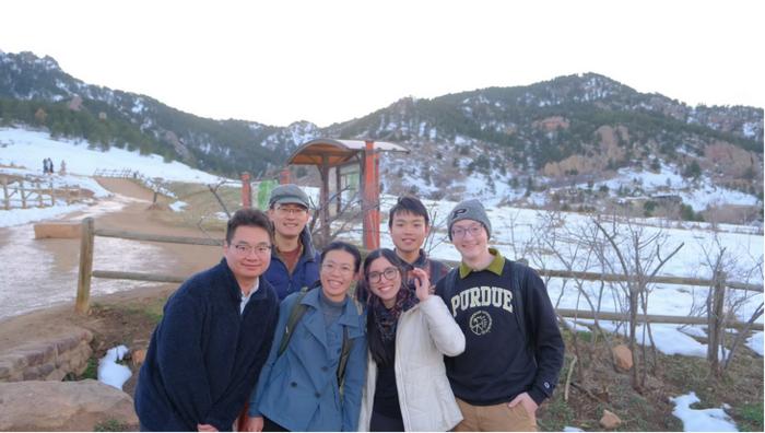 New research from Purdue University reveals how moisture influences atmospheric blocking, a phenomenon that often drives heat waves, droughts, cold outbreaks and floods, helping solve a mystery in climate science and improving future extreme weather predictions. Back row (from left): Lei Wang and Zhaoyu Liu. Front row (from left): Ken Yan, Ka Ying Ho, Valentina CastaƱeda and Dean Calhoun. (Photo provided by Lei Wang)