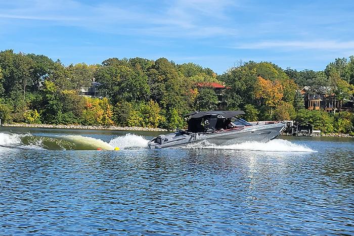 The researchers tested seven recreational powerboats commonly used in Minnesota’s lakes and rivers based on their two most-used settings. For non-wakeboats: displacement mode/leisure cruise and planing mode/cruising. For wakeboats: semi-displacement mode/surfing and cruising. The boats were driven directly over the measurement sensors five times for each operational condition.