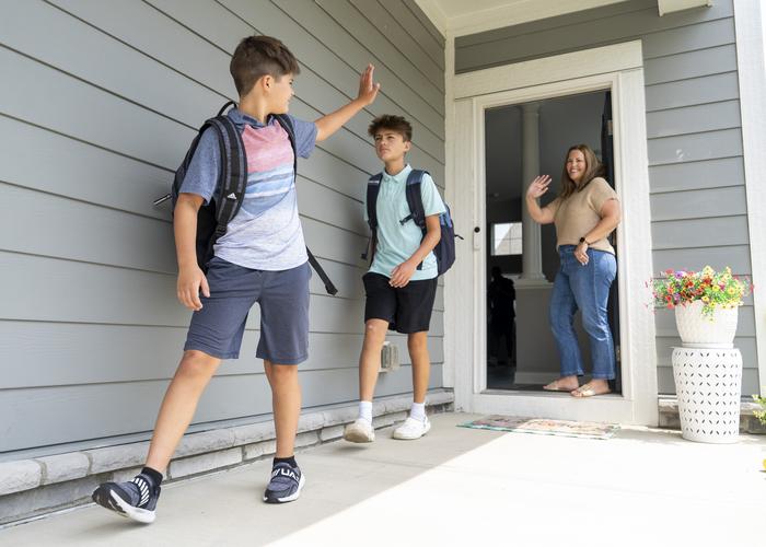 On the first day of school, Kelley McChristy waves goodbye as her sons head out the door, equipped with coping tools to support a smooth transition back to the classroom.