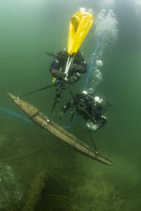Phillip Short and Brendan Foley recover a gun bed from the wreck of Gribshunden, 2021. Image: Klas Malmberg.