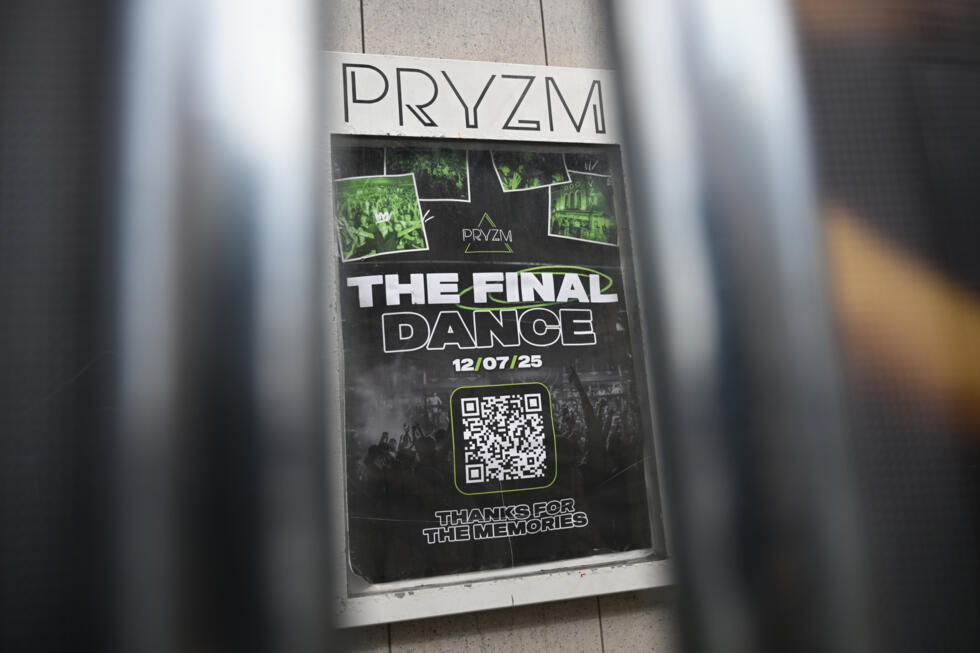 A sign advertises the final night at the closed-down PRYZM Kingston club in Kingston, west of London, on July 31, 2025 © JUSTIN TALLIS / AFP