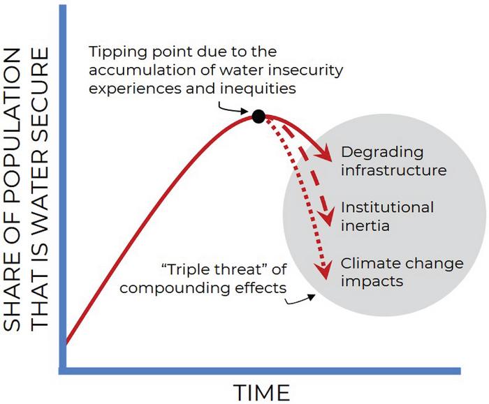 Declining water security driven by degrading infrastructure, sluggish policy responses and accelerating climate change.