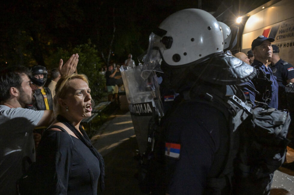In the capital city of Belgrade, police in full riot gear blocked anti-government protesters from approaching the area in a park near the parliament building where Vucic's supporters have been camping since March.