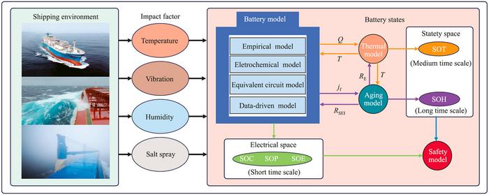 The study reveals key insights that could transform electric ship design: (1) Environmental Impact on Batteries: Temperature and vibration mainly affect cycle aging, while humidity and salt spray speed up calendar aging, reducing overall battery lifespan. (2)Advanced State Estimation Methods: The paper reviews cutting-edge techniques for monitoring State of Charge (SOC), State of Power (SOP), State of Health (SOH), and more—essential for optimizing battery performance in real-time. (3) Multi-State Joint Estimation: A hybrid approach combining data-driven and electrochemical models proves most effective in unpredictable marine conditions.