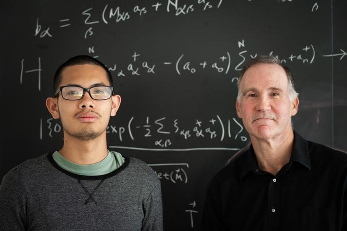 University of Vermont professor Dennis Clougherty (right) and his student Nam Dinh wondered if there are systems in the atomic scale that behave like the vibrating motion of a guitar string in the Newtonian world. They found that the answer is yes—and solved a 90-year-old problem in quantum physics.