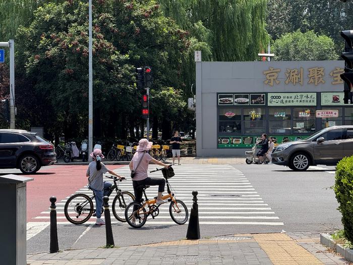 Beijing commuters endure scorching heat as they brave the sun-drenched streets.
