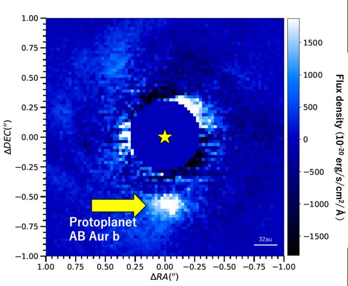 Small rocky planets like Earth, which can harbor life, and giant gas planets like Jupiter are born around stars like the Sun. Their birthplace is a thin, disk-shaped structure of gas and dust known as a protoplanetary disk. Protoplanetary disks are observed not only around Sun-like stars but also around more massive or lighter young stars. Since the 2010s, their detailed structures have been revealed by 8-meter class telescopes such as the Subaru Telescope (in visible and infrared light) and the ALMA Observatory (in radio wavelengths). Although many planets have been inferred indirectly from fine structures in these disks—such as gaps or spiral arms—directly capturing newly formed planets (protoplanets) within the disks has so far been achieved only in a few cases, including PDS 70 b and c and AB Aurigae b (AB Aur b). This is thought to be because most protoplanets are embedded within the disk, and become more visible only when they carve gaps in the disk or are observed from directly above. Protoplanets are also considered to be actively gathering material from the surrounding disk as they grow. However, detailed spectroscopic observations of this mass accretion from an embedded disk have, until now, been limited to the PDS 70 system. In the present study, an international team of researchers led by the Astrobiology Center (Japan) and the University of Texas at San Antonio (USA) succeeded in detecting hydrogen emission lines from AB Aur b using the multi-object spectrograph MUSE mounted on the VLT. These emission lines are interpreted as evidence of mass accretion from the circumplanetary disk onto the protoplanet.