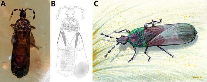 The find is interesting even within the family, since all flat bugs previously known from Burmese amber belonged to more derived (apomorphic) groups, while older lineages were absent from the faunal inventory. What truly makes the newly described species, named Shaykayatcoris michalskii, remarkable, however, is its iridescent, shimmering exoskeleton — never before seen in this family.